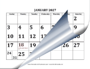 Great for people with vision problems, or who wish to see dates from across the room, this printable 2027 calendar features all dates in large, bold fonts. Holidays are noted as well. Free to download and print.